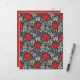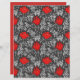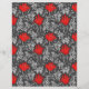 Papier in een William Morris bloemendamastpatroon van anemoon bloemen en bladeren - licht zilvergrijs / grijs blad, en bloemetjes in tinten van diep lippenstift rood op een donker grafiet grijze achtergrond