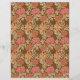 Papier in een William Morris, Art Nouveau, bloemenprint van gestileerde chrysanten, in tan, roestterracotta en koraal, op een diep chocoladebruine achtergrond