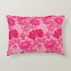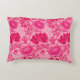 Accent kussen in een William Morris, Art Nouveau, bloemletterdruk van gestileerde chrysanthema's, digitaal versterkt en gekleurd, in tinten van diepe fuchsia roze, azalea roze en bruine, op een bleke roze achtergrond