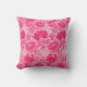 Kussen in de buitenlucht in een William Morris, Art Nouveau, bloemletterlijk afgebeeld van gestileerde chrysanthema's, digitaal versterkt en gekleurd, in tinten van diepe fuchsia roze, azalea roze en bruine, op een bleke roze achtergrond