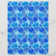 Papier in een William Morris, Art Nouveau, bloemenprint van gestileerde chrysanten, in tinten denimblauw en diep indigo op een lichtblauwe en witte achtergrond