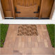 Deurmat in een William Morris-demaspatroon van planten en bladeren van de artisjok, in warm bruin en beige, tegen een donkerchocoladebruine achtergrond, digitaal versterkt en gekleurd
