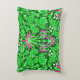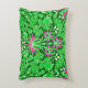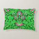 Accentkussen in een William Morris-patroon van hyacinten, tulpen en bladeren, in tinten limoengroen, geaccentueerd met fuchsia roze en wit, op een diep smaragdgroene achtergrond