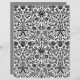 Papier in een William Morris patroon van hyacinten, tulpen en bladeren, in tinten zilvergrijs / grijs en zwart, op een witte achtergrond