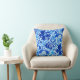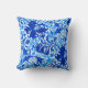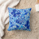 Gooi kussen in een  William Morris bloemenprint van gestileerde lelies en irissen, digitaal versterkt en gekleurd, in tinten van diep kobaltblauw, ceruleenblauw en licht hemelsblauw op een witte achtergrond