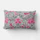 Lumbar kussen in een William Morris, Art Nouveau, textieldruk van bruinvissen en bladeren, digitaal versterkt en gekleurd, in fuchsie en lichtroze, met grafiet en middelgrijs/grijze bladeren, op een lichtzilvergrijze achtergrond