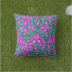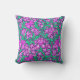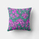 Pillow in a William Morris, Art Nouveau, textieldruk van bruinvissen en bladeren, digitaal versterkt en gekleurd, in zacht orchidee en turquoise, tegen een diepgewortelde paarse achtergrond