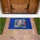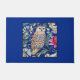 Doormat in een William Morris Art Nouveau, tapijtpatroon, voorzien van een bruine en beige owl tegen fantasievloemen en -bladeren, met een diepe kobalt blauwe achtergrond en rand