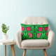 Lumbar kussen in een William Morris-textielpatroon van gestileerde pimpernel bloemen en bladeren - bloemen in een gradiënt van diep tot zacht koraalroze, met lichte nertgroene bladeren, op een donkergroene achtergrond