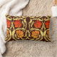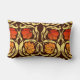 Lumbale kussen in een William Morris textielpatroon van gestileerde pimpernel bloemen en bladeren - bloemen in een gradiënt van diep roest sinaasappel tot goud, met lichte chamois gele bladeren, op een donkerchocoladebruine achtergrond