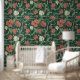 William Morris Red Floral Pattern Behang