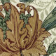 Dit is een digitaal verbeterde print afkomstig van een antiek blokbedrukt Single Stem-motief uit 1905 op zijwandpapier met "Morris & Co."-label met bloemenprint en scrollend blad met bleek loof arabesk onderlaag. Morris and Company werd opgericht door William Morris. William Morris was een Victoriaans tijdperk dichter, romanschrijver, textielontwerper en een belangrijk figuur van de British Arts and Crafts Movement. Zijn design hadden een middeleeuws-geïnspireerde esthetiek en respect voor handwerk en traditionele textielkunsten. Hij was ook een van de oprichters van Kelmscott Press. Hij was bevriend met vele Pre-Raphaelite kunstenaars zoals Edward Burne-Jones en Dante Gabriel Rossetti. U kunt de grootte van het patroon aanpassen. Hoewel de standaardachtergrondkleur is afgeleid van het oorspronkelijke ontwerp, kunt u deze kleur aanpassen aan uw decor.