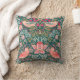 Dit prachtige gooi kussen toont het iconische textielpatroon dat de legendarische William Morris ontwierp, versierd met weelderige aardbeien, ingewikkelde wijnstokken en charmante vogels, allemaal weergegeven in een unieke twist van betoverende tinten roze en groen.