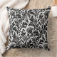 Droef kussen in een William Morris-damperpatroon van dikke bloemen en bladeren, in het zwart, op een witte achtergrond, digitaal versterkt en gekleurd