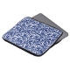 Computersleeve in een William Morris-damperpatroon van dikke bloemen en bladeren, in diep kobalt blauw, op een witte achtergrond, digitaal versterkt en gekleurd