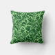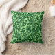 Drijf kussen in een William Morris-damespatroon van dikke bloemen en bladeren, in diep-smaragdgroen, op een lichtmuntgroene achtergrond, digitaal versterkt en gekleurd
