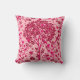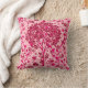 Een kussen in een William Morris Art Nouveau goochelen een traditioneel "boom of life"-patroon, met fantasiebomen omringd door takken vol exotische bloemen en vogels, diepgewortelde wijn en fuchsia op een pastelroze achtergrond