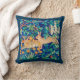 Gooi een kussen in een William Morris-illustratie van twee hazen die door een wilde bosomgeving rennen - digitaal versterkt en gekleurd