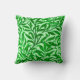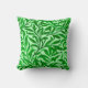 Drijf kussen in een William Morris-patroon van gestileerde wilde takken, in het midden tot donkergroen, op een bleke mijngroene achtergrond