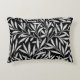 Accent pillow in een William Morris Art Nieuw-textielpatroon van gestileerde wilde takken en bladeren in tinten van zilvergrijs/grijs en wit op een zwarte achtergrond