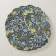 William Morris Seaweed Floral Pattern Round Pillow - Het versieren van dit product is Seaweed, een behangontwerp gemaakt in 1901 door de Britse textielontwerper John Henry Dearle (1859-1932) en geproduceerd door Morris & Co., een bedrijf opgericht door William Morris in 1861. Zeewier is een aantrekkelijk ontwerp met een scala aan bladeren in groene tinten met blauwbloemen en grote kabbelende gele stengels op een donkerblauwe achtergrond met blauwe stippen.