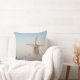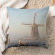 Gooi de kussens met een traditionele nederlandse windmolen bedekt met sneeuw in een landschap in Aarlanderveen, Nederland, in de winter in het warme vroege daglicht bij zonsopgang. Een geweldig stuk decoratie op je bank!