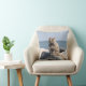 Photograph of a windswept cat sat on rocks with the sea in the background. On home gifts, furnishings and decor.