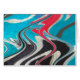 een zwart-wit met rode en wateraccenten in een gegolfd abstract ontwerp.