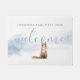 Elegante persoonlijke familienaam deurmat met een vos en uw familienaam met uw gevestigde datum in een klassieke tekst op een winter boslandschap met de boodschap "welkom" in een elegante scripttekst.