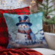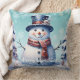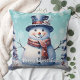 Winter Forest Snowman Kerstmis | Blauwgroen Kussen