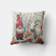 Een grillig wintertafereel ontvouwt zich, waar een vrolijke kabouter in een fel rood pet hangt met een lieve witte geit omringd door besneeuwde bloemetjes.