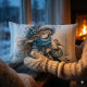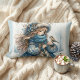 Winter Meisje met Vogel in Blauwe Bloemen Jas Kussen