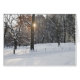 Originele foto van zonneschijn door de gebouwen en van pas gevallen sneeuw in Central Park.