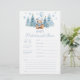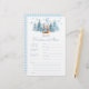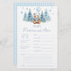 Voeg een vleugje elegantie toe aan uw winterthema babyjongensdouche met onze geavanceerde "Baby-voorspellingen en advies" -game. Met een charmante teddybeer die een schattig pet en sjaal draagt, een blauwe ballon vasthoudt, omringd door blauwe pijnbomen en sneeuwvlokken, is deze heerlijke activiteit ideaal om uw gasten te vermaken en blijvende herinneringen te creëren. Ideaal voor het toevoegen van plezier en opwinding aan uw speciale feest!