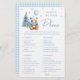 Add a touch of elegance to your winter themed baby boy shower with our sophisticated "What's in your phone" game. Featuring a charming teddy bear wearing winter hat and a scarf, holding blue balloon, surrounded by pine trees and snowflakes, this delightful activity is perfect for entertaining your guests and creating lasting memories. Ideal for adding fun and excitement to your special celebration!