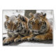 Drie tijgers kruipen in de sneeuw op een winterdag.