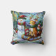 Een vrolijke sneeuwman, een rendier en een vos genieten van een besneeuwd landschap terwijl ze op een slee rijden vol kleurrijke cadeaus onder een magische winterhemel.