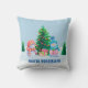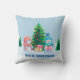 Dit luie sneeuwpaar staat voor een kerstboom, in afwachting van geschenken. De tekst onderaan kan worden aangepast.