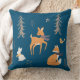 Winter Woodland Dieren Folk Art Blauwe Kerst Kussen