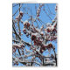 Foto van een boom die nog steeds bessen draagt na de eerste sneeuw van het seizoen. Dit zou een goede kaart zijn om te gebruiken voor de winterse feestdagen of om het even welk tijdstip voor een enthousiaste natuur.