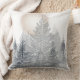 Winterbomen en zon, ijzig zwart-wit vierkant Sierkussen — Een sereen ontwerp met verschillende wintervariaties, ijzige bomen. Een lage winterzon geeft op de achtergrond een lichte gloed. Het kussen kan worden gebruikt als decorstuk voor een bank, stoel of vloerelement. Vrolijk kerstfeest van Kristin en Steve, KNS Gear.