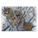 Kleurenpotloodillustratie van een eekhoorn in de takken van een krabpachtige boom, met een moer die hij voor de winter heeft gered. Geweldige seizoenskaart of kerstkaart!