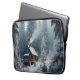 Winterhutscène met sneeuw en pijnbomen laptop sleeve