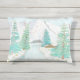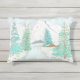 Een accentkussen met een prachtige winterscène, waaronder besneeuwde bergen, evergreens, rustieke hut en bevroren meer. Origineel kunstwerk van W.B.