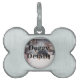 Wintersneeuwscène met schattige zwarte en geelbrui huisdieren naamplaatje