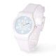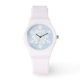 Vier de winter (of Kerstmis) met dit eenvoudige, maar elegante ontwerp: een minimalistische witte sneeuwvlok op een koele, ijskleurige achtergrond. De twaalf punten van de gestileerde sneeuwvlok komen overeen met de 12 uur van het horlogegezicht.
