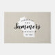 Moderne boerenboerengepersonaliseerde doormat met je familienaam in je staatskaart. Faux burlap canvastextuurachtergrond. Klik op Aanpassen om uw eigen tekst en afbeeldingen toe te voegen en een uniek ontwerp te creëer!