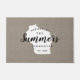 Moderne boerenboerengepersonaliseerde doormat met je familienaam in je staatskaart. Faux burlap canvastextuurachtergrond. Klik op Aanpassen om uw eigen tekst en afbeeldingen toe te voegen en een uniek ontwerp te creëer!