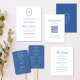 Wit & Blauw Monogram Crest Formeel Script Trouwen Kaart
