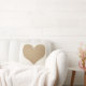 Dit moderne witte kussen heeft een faux gouden lederen hart.